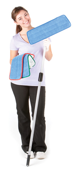 Use this damp flat-mop on smooth hard surfaces for general purpose ultra-hygienic cleaning. The interior is constructed of three layers that are absorbent and don't drip. The flat-mop works best damp to avoid hydroplaning and maximize the cleaning benefits of microfibre. The outer working layer is twisted-loop microfibre and the securing side is proprietary